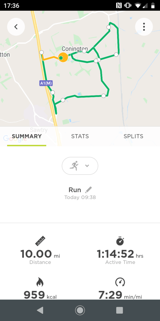 Friday and Saturday I relapsed onto the treadmill, although I kept the pace high and on Sunday I got back on track with what I intend to be a weekly 10 miler.