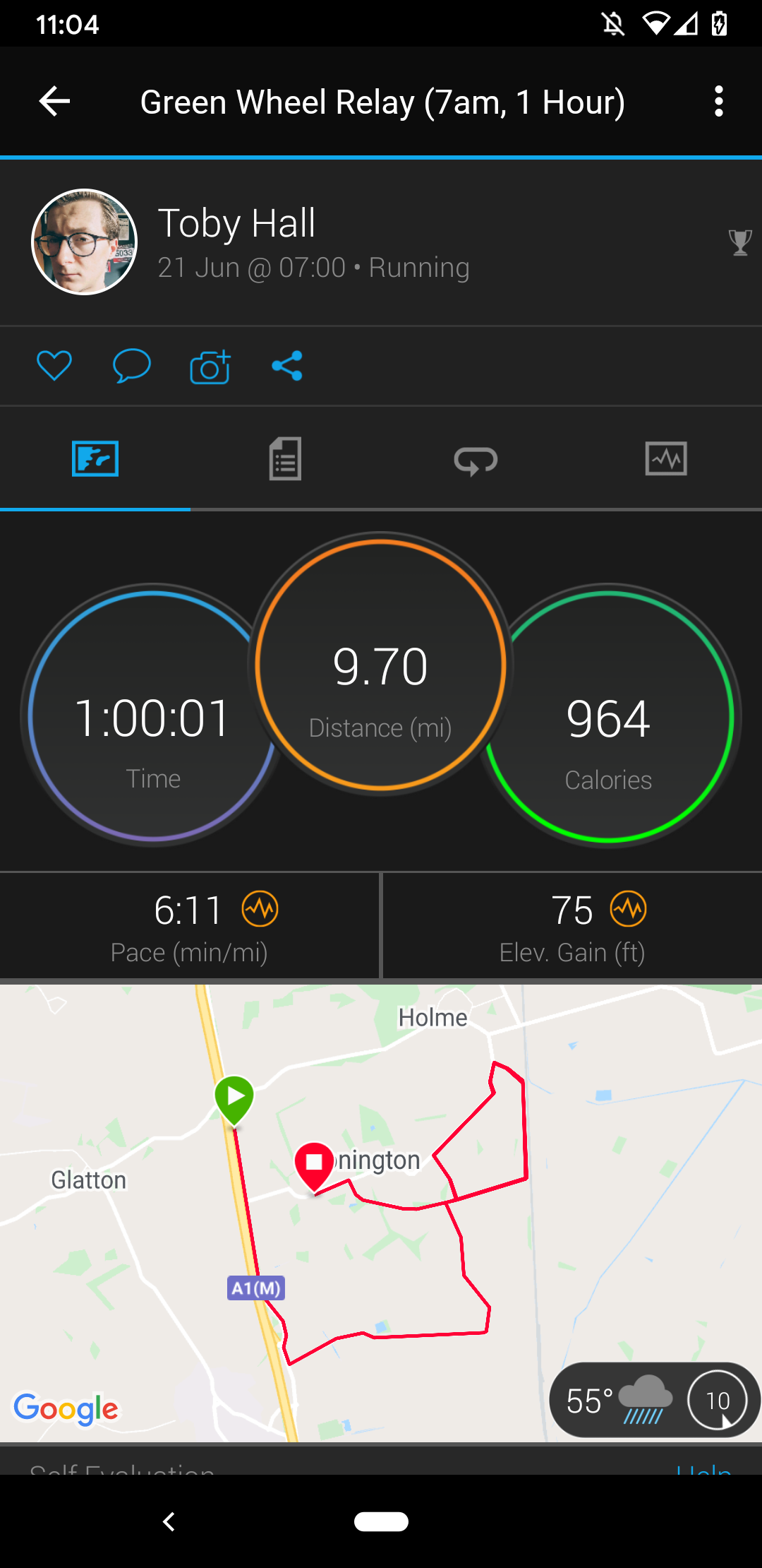 Just before the 17:40, I ran a 60 minute relay leg in a virtual replication of a local event (pictures below). It’s hard to say how close I came to replicating what my performance would have been in a competitive race, but fair to say I was pretty wiped by the end of it.