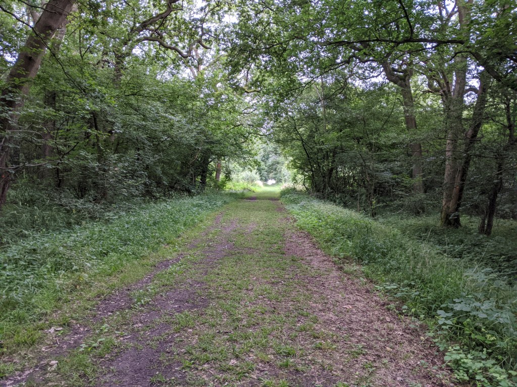 I’m liable to see hares, muntjacs, birds of all varieties, frogs, mice, and countless bugs that I could never name. This morning as I came up out of the woods onto the bridleway that leads to my preferred entrance/exit, three horses raced by uphill on the paddock which backs onto the trail. I followed rather limply behind, on the human side of the path, as they galloped upwards with their riders.
