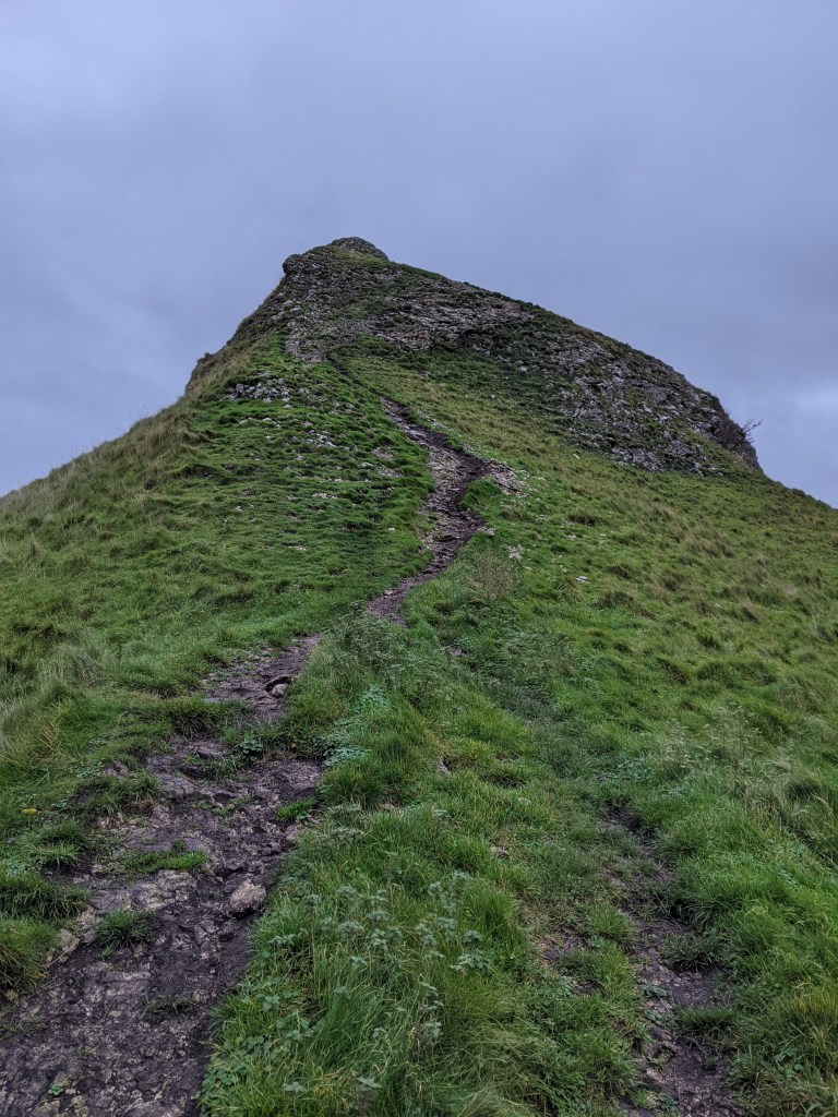 It is a relatively small, but notably unique and remarkably challenging, rise in the Peak District, just outside the sleepy village of East Sterndale. The clouds were low, but they didn’t obscure the view so much as to make it all the more dramatic; crowning every hill top, farmhouse, and tumulus, in eerie grey wreaths. So far the day’s adventure had been successful, despite the typically gloomy weather. The wind was brisk and the rain came on lightly, but frequently. It was the sort of rain which wasn’t particularly challenging to my inexpensive waterproofs, but it was persistent, and had been persistent for a few days already, so the undulating earth around me was growing slippery.